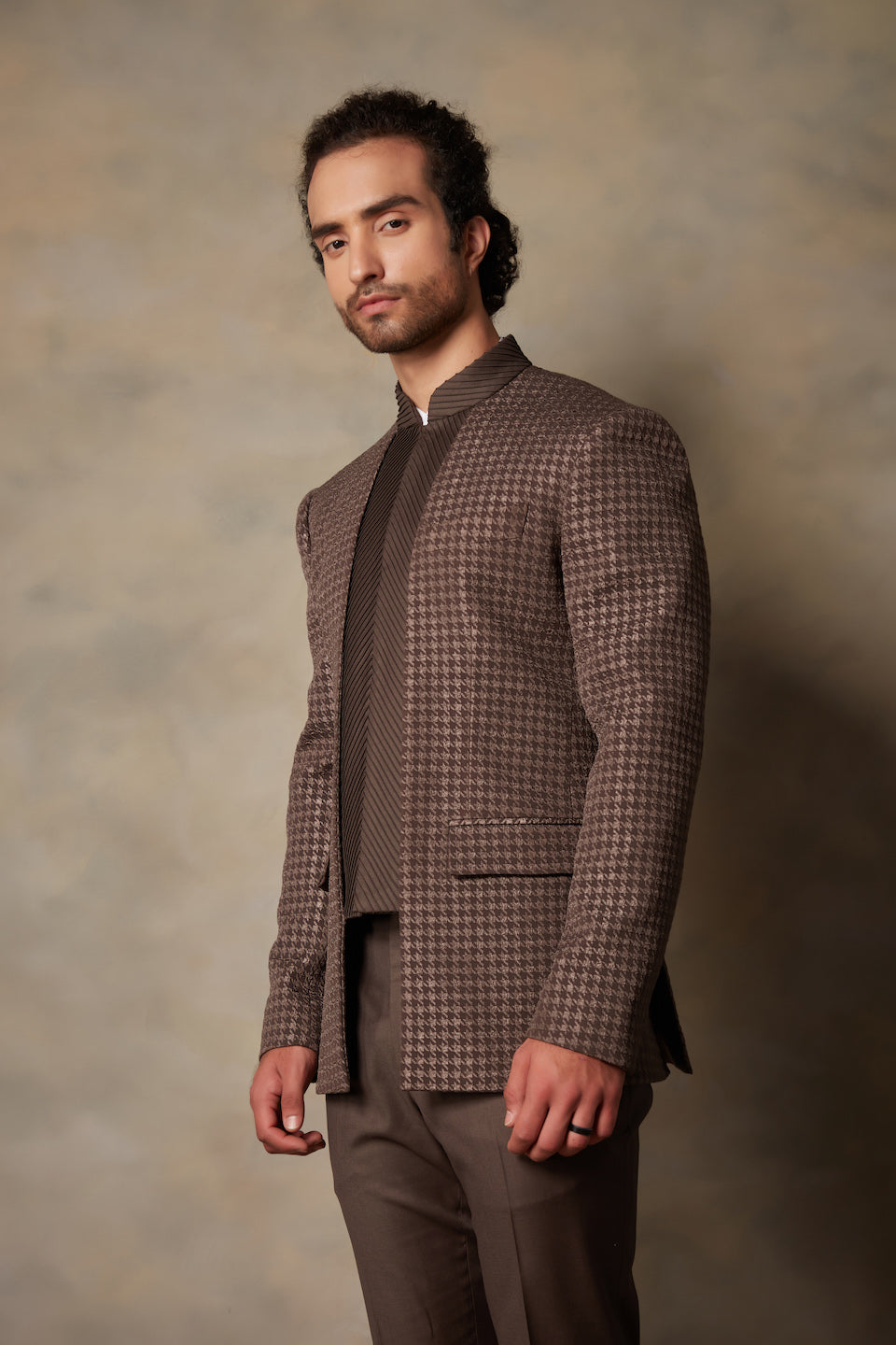 Gargee Designer's BROWN TEXTURED JODHPURI SET