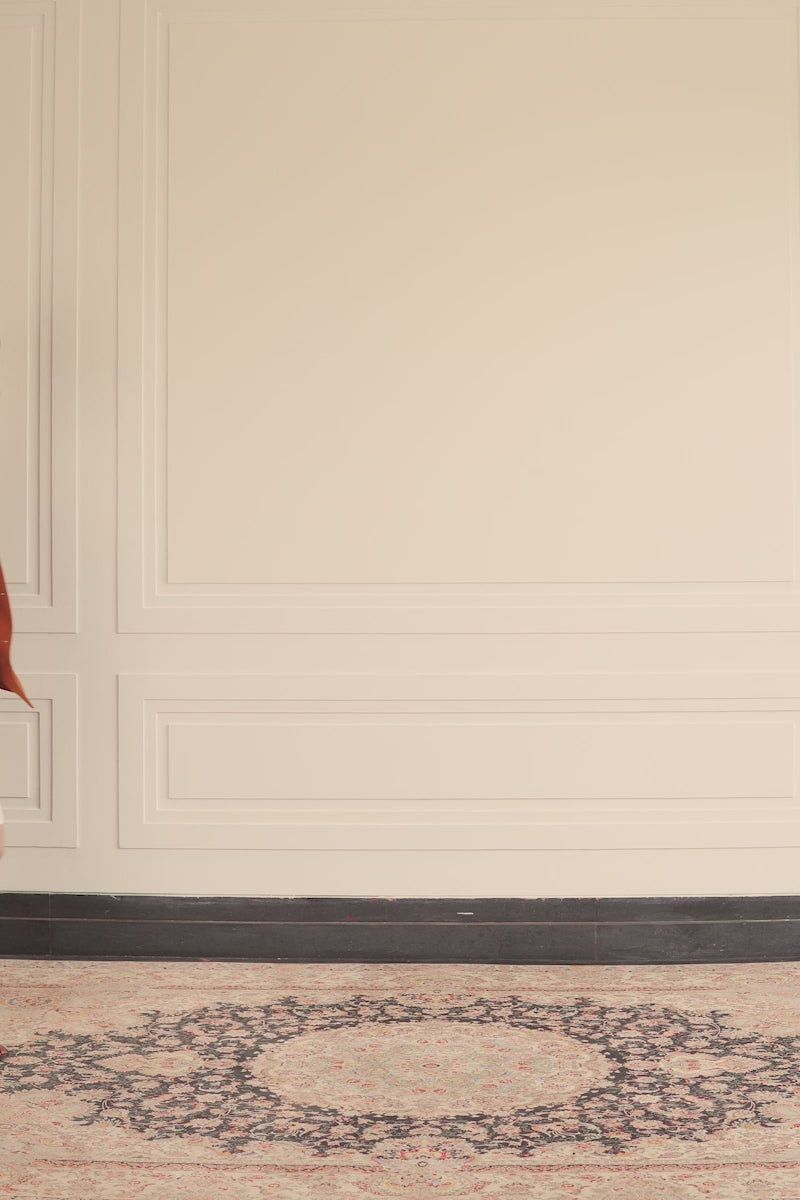 In a warm rust shade, this shacket is styled with a spread collar, buttoned closure, and four flap pockets. Its tailored construction offers a sleek take on a utility classic.