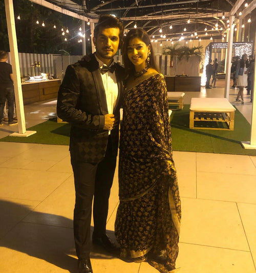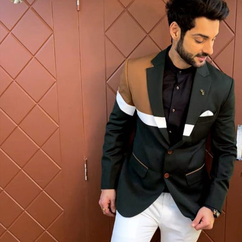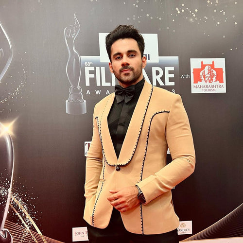 BEIGE N BLACK STUDDED TUXEDO SET