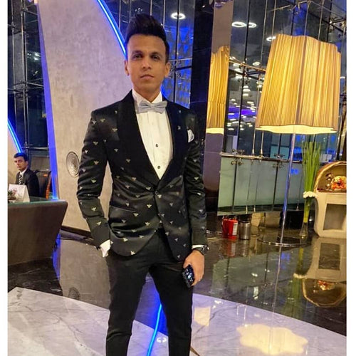 BLACK EMBROIDERED TUXEDO SET