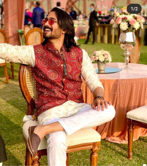 RED EMBROIDERED BUNDI SET