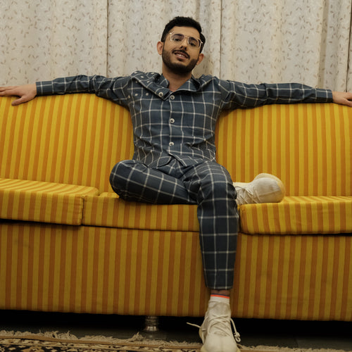BLUE TUCKED TUXEDO SET